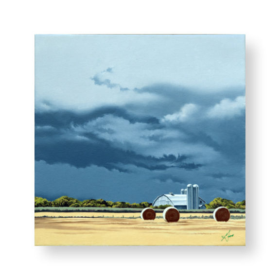 To compliment Rustic Chrome, Ginos new Rural Atmospheres series of paintings also feature rural settings but have big dramatic skies. Images created represent his personal way of seeing everyday objects in spacial scenes such as barns, farmers fields and skies in a surrealistic manner. The aim is to reflect a particular mood, feeling or atmosphere in each. The artwork created by Gino is based on his emotional observation of the subject matter and then interpreted in a realistic and surrealistic manner. Within his brushwork, composition, draftsmanship and the capture of light; colour; value; tone; and texture, combined with how shapes, details and areas of simplicity relate to each other, mirrors how similar attributes come together in sound to create a soulful piece of music.